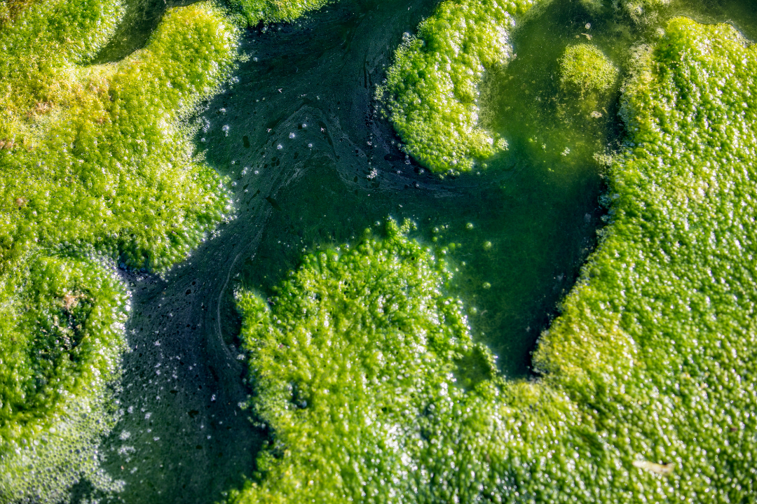 - Estímulo à Produção Primária e Proliferação Fitoplanctônica: O enriquecimento nutricional intensifica o crescimento do fitoplâncton, microalgas e cianobactérias, que utilizam nitrogênio, fósforo, dióxido de carbono (CO₂) e energia luminosa para realizar fotossíntese (6 CO₂ + 6 H₂O → C₆H₁₂O₆ + 6 O₂), promovendo rápida formação de biomassa e originando os floramentos algais (blooms), que reduzem a transparência da água.